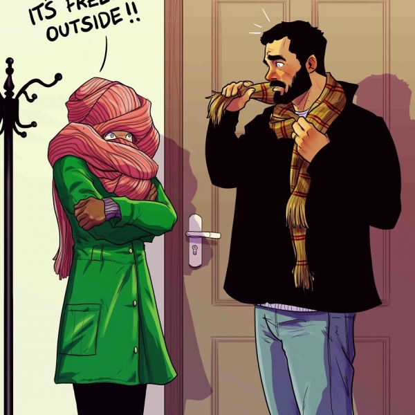 სახალისო ნახატებზე ნაჩვენები ეპიზოდები უამრავი წყვილისთვის ნაცნობი და ახლობელია.