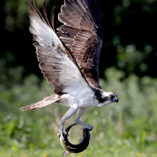 ჯეინ ბარლოუ - ქორისებრი ფრინველი წყლის შაკი (Pandion haliaetus) მოპოვებული კალმახით ტბა ავიემორზე, კერნგორმსის მთიანეთი, შოტლანდია.