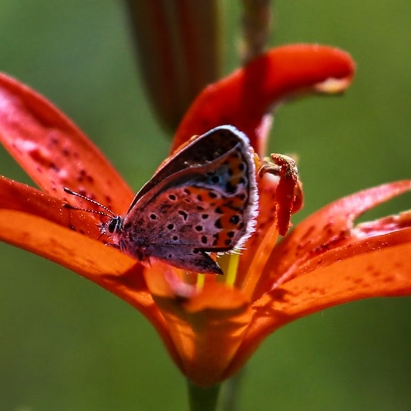 ვლადიმირ სმირნოვი - პეპელა და შროშანი Lilium buschianum ბერიოზოვსკის ნაკრძალში ამურის ოლქი, რუსეთი.
