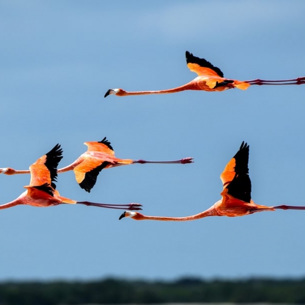რონალდო შმიდტი - ვარდისფერი ფლამინგოები იუკატანის ნახევარკუნძულზე მდებარე რია ლაგარტოსის ნაკრძალში, მექსიკა.