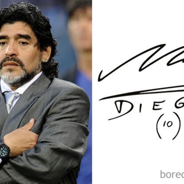 პოპულარულ ვებგვერდ Bored Panda-ს მიერ გამოქვეყნებულ ფოტოებზე ნახავთ მსახიობებს, პოლიტიკოსებს, მხატვრებსა თუ სხვა საყოველთაოდ ცნობილ პიროვნებებს, რომლებიც გამორჩეულად აწერდნენ ხელს. მაგალითად, დედოფალი ელისაბედ I ლამაზად ქარგავდა სახელს, მწერალი კურტ ვონეგუტი საკუთარ პროფილს ახატებდა ხელმოწერას, ლეონარდო და ვინჩის ავტოგრაფიც ქარაგმული იყო, ალბრეხტ დიურერი მხოლოდ სახელ-გვარის ინიციალებს აჩენდა, ემი ვაინჰაუსი კი - მხოლოდ სახელს.