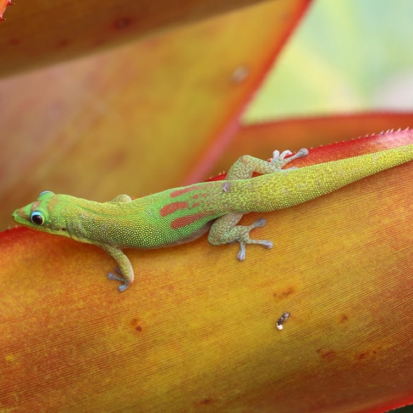 ტერი სოლი - აგავაზე მჯდარი მადაგასკარის ბრტყელკუდა გეკონი ფელზუმა (Phelsuma laticauda) ბიგ აილენდში, ჰავაი.