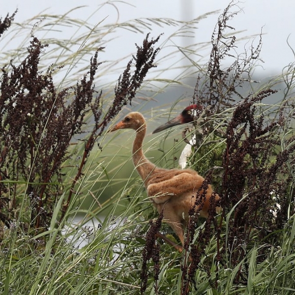 ჯერალდ ჰერბერტი - გაქრობის წინაშე მყოფი სახეობა ამერიკული წერო (Grus americana) ლუიზიანაში კიბორჩხალებით სავსე ტბორებში ბარტყთან ერთად გადაადგილდება.