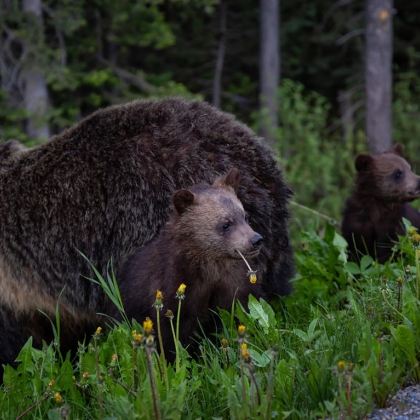 ედგარ ბუიონი - გრიზლი და მისი ბელები ბანფის ეროვნულ პარკში, ალბერტას შტატი, კანადა.