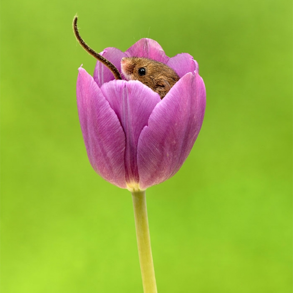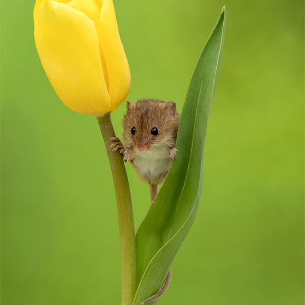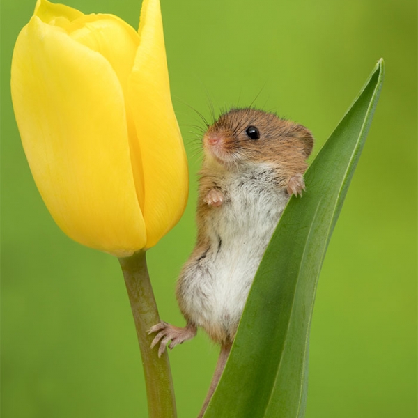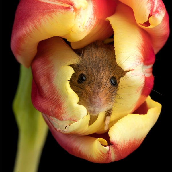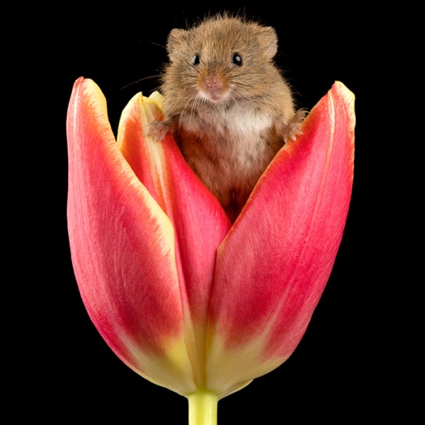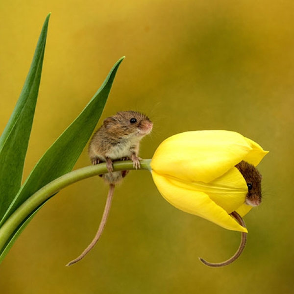 ჰერბერტის სახალისო ფოტოსერიაზე მინდვრის პატარა თაგვები სახვადასხვა შეფერილობის ტიტებთან ერთადაა ფირზე აღბეჭდილი.