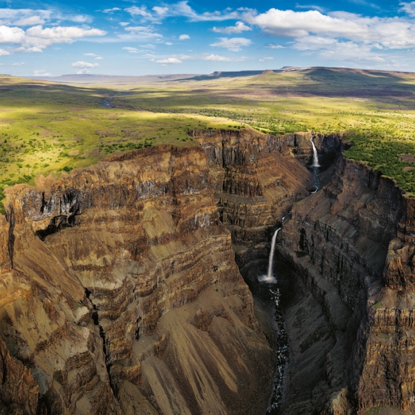 პუტორანის ნაკრძალში კანდინსკის ჩანჩქერი 208 მეტრიანი პუტორანის პლატოდან კანიონში ეშვება.