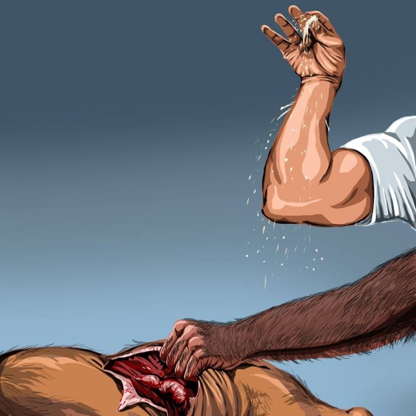 გუნდუზ აღაევის ახალ 10 ილუსტრაციაზე ნაჩვენებია პირველყოფილისა და თანამედროვე ადამიანის ერთნაირი დამოკიდებულება სხვადასხვა ქმედებასა და რეაქციაზე.