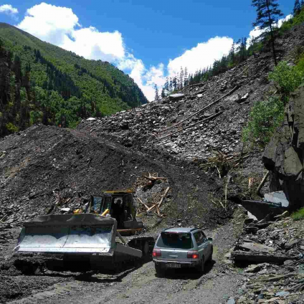 ფშაველი-აბანო-ომალოს საავტომობილო გზის 56-ე კილომეტრზე, ზამთრის თვეებში დაახლოებით 300 000 კუბური მეტრი სიდიდის კლდოვანი მასა მოწყდა, რომელმაც, დაახლოებით 10 მეტრის სიმაღლეზე, გზის სავალი ნაწილი დაფარა და მდინარე ალაზნის დინება გადაკეტა. შემდეგ აპრილის თვეში განმეორებითი - დაახლოებით 200 000 კუბური მეტრი სიდიდის კლდოვანი მასების ჩამოსვლა დაფიქსირდა, რამაც საგრძნობლად დაამძიმა არსებული მდგომარეობა.