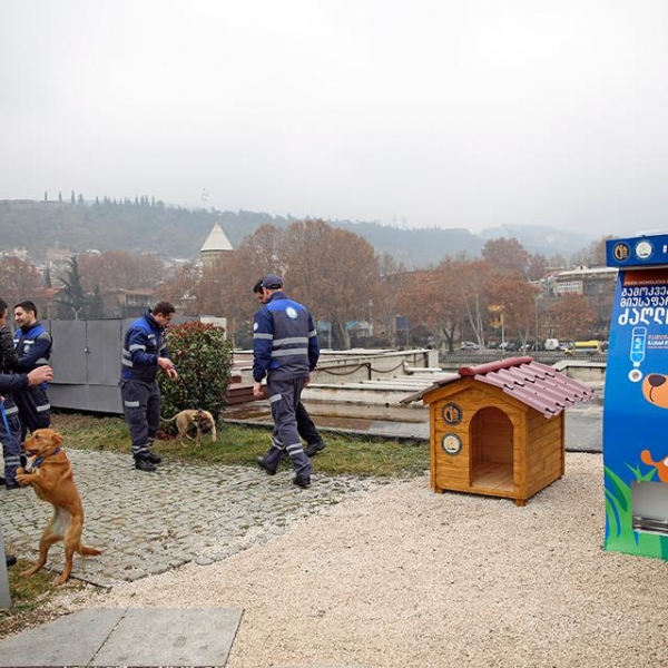 კვების აპარატთან ერთად, რიყის პარკში მიუსაფარი ძაღლებისთვის ხის სახლიც დაიდგა. ცხოველთა მონიტორინგის სააგენტო, პირველ ეტაპზე, თბილისის ქუჩებში მიუსაფარი ძაღლებისთვის 10 ხის სახლს დადგამს.