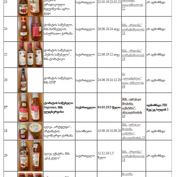 კვლევის შედეგების თაობაზე წერილები სურსათის ეროვნულ სააგენტოსა და შესაბამის მეწარმეებთან გაიგზავნება.