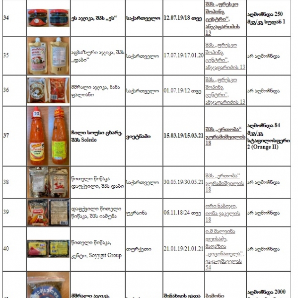 ორგანიზაციის ვებგვერდზე, momxmarebeli.ge-ზე გამოქვეყნებული ინფორმაციის მიხედვით, არასაკვები საღებავების ჯგუფის (12 საღებავი) შემცველობაზე შესამოწმებლად პროდუქტების ნუმუშები გერმანიის ლაბორატორიაში იყო გაგზავნილი.