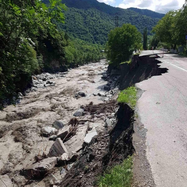 გუშინდელმა ძლიერმა წვიმამ და სეტყვამ რაჭაში მდინარე რიონის და მისი შენაკადების ადიდება გამოიწვია. სტიქიის შედეგად, 12 სოფელი და 2000-ზე მეტი ადამიანი გარე სამყაროს მოწყდა.