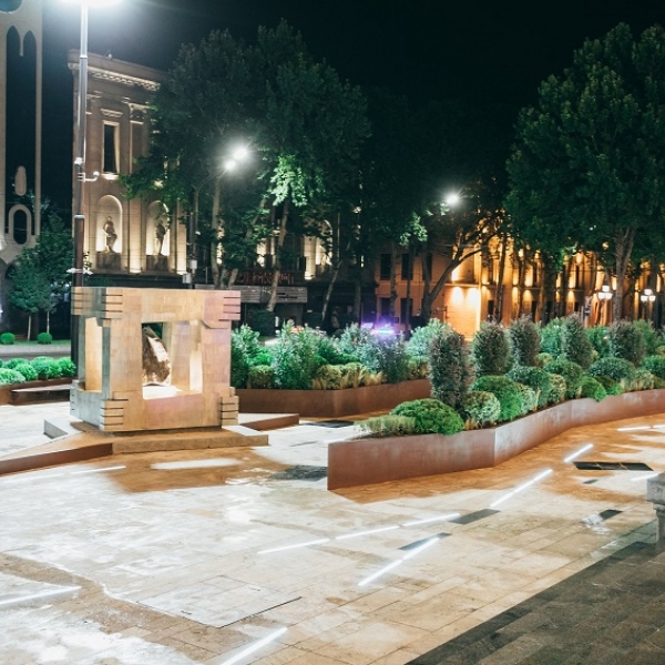 გარდა ამისა, შეიცვალა წყალგაყვანილობა, მოწესრიგდა სანიაღვრე სისტემა, მოეწყო რკინა-ბეტონის არმირებული ფილა და ჰიდროიზოლაციის ფენა, პერიმეტრი კაბელარხებით დაიქსელა და ტერიტორია მოპირკეთდა ბუნებრივი ქვის ფილებით, ფილებს შორის დამონტაჟდა დეკორატიული სანათი, განხორციელდა გაუქმებული თბოქსელის დემონტაჟი, რომელიც ათეული წლებია აღარ ფუნქციონირებდა, დამონტაჟდა დეკორატიული განათება და განთავსდა სკამები, დაირგო 2000-მდე ნერგი, მათ შორის: ლოროპეტალუმი, მარადმწვანე ძახველი, ოლეანდრა, ფიტოსფორუმი, ბზა, როზმარინი, ვაციწვერა, ჭრელფოთოლა ლუგუსტრუმი, კვიდო. თარგებში მოეწყო წვეთოვანი სარწყავი სისტემა, განახლდა ტერიტორიაზე არსებული შადრევანი, გამოიცვალა აუზის განათება, განახლდა ელექტროსისტემა და შადრევნის წინა ფასადი, აუზის იატაკზე გაკეთდა მოზაიკა, მოეწყო ახალი გარეგანათების ქსელი.
