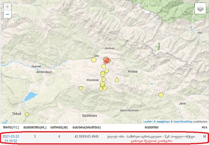 სქრინი სეისმური მონიტორინგის ეროვნული ცენტრის ვებგვერდიდან