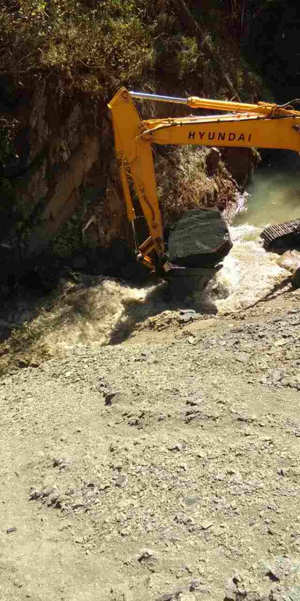 ადგილზე რამდენიმე სპეციალისტი ჩავიყვანეთ, რომ დაგუბებული მდინარის დინება როგორმე გაეხსნათ. ტრაქტორით იყო სამუშაოები ჩასატარებელი, მაგრამ ყველამ უარი გვითხრა. სადაც მეწყერია და ქვები ცვივა, ზუსტად ძირშია ის ადგილი და რისკი საკმაოდ მაღალი იყო. გუშინ ხობიდან ჩამოვიყვანეთ ზურაბ გოგუა, რომელსაც არც წყალი აშინებს, არც ქვა და არც კლდე. დღეს მდინარის დინება გახსნა დაახლოებით 3 მეტრით. კლდის ნაწილიც ავაფეთქეთ და წყლის დონემ უკვე ერთი მეტრით დაიწია.