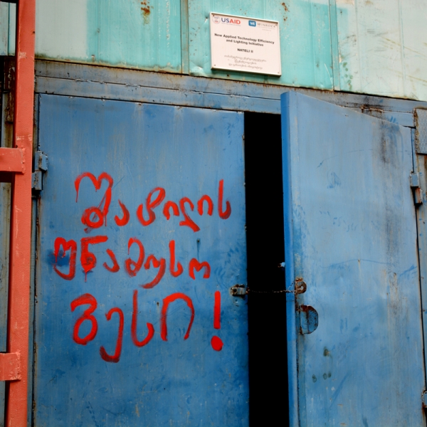 ადგილობრივებმა ჰიდროელექტროსადგურის კარზე პროტესტის ნიშნად წარწერაც გააკეთეს: „შატილის უნამუსო გესი“.