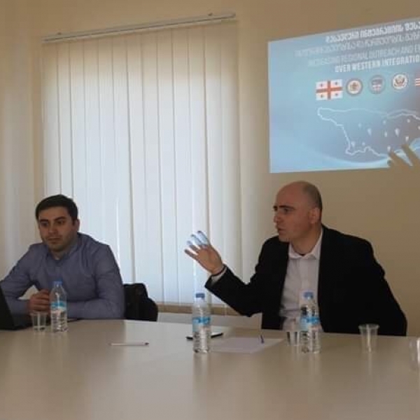 შეხვედრაზე, საქართველოს ევროპული და ევროატლანტიკური ინტეგრაციის საკითხებზე საინფორმაციო ცენტრის ნატოსა და ევროკავშირის შესახებ კახეთის რეგიონული ბიუროს წარმომადგენელმა ბექა ექსეულიძემ და მოწვეულმა ექპერტმა ნატოსა და ევროკავშირის საკითხებში - გიორგი მუჩაიძემ ისაუბრეს.