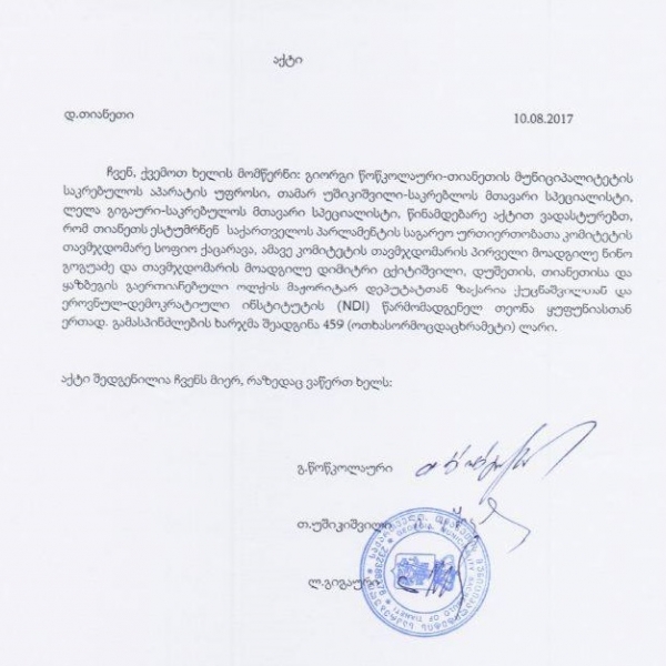 სააგენტო „რეგინფოს“ მიერ მოპოვებული ინფორმაციით, ზაქარია ქუცნაშვილთან ერთად, თიანეთში იმყოფებოდნენ პარლამენტის საგარეო ურთიერთობათა კომიტეტის თავმჯდომარე სოფიო ქაცარავა, მისი მოადგილეები ნინო გოგუაძე და დიმიტრი ცქიტიშვილი, ასევე ეროვნულ-დემოკრატიული ინსტიტუტის (NDI) წარმომადგენელი თეონა ყუფუნია.