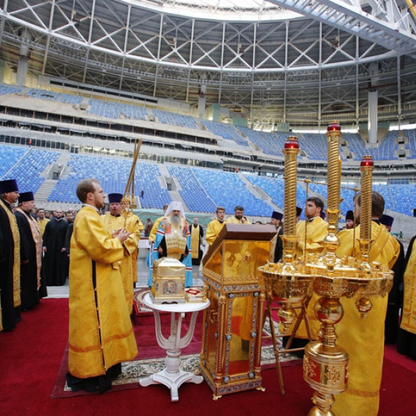 სტადიონის კურთხევის ცერემონიას მღვდელმსახურებთან ერთად პეტერბურგის ვიცე-გუბერნატორი იგორ ალბინიც ესწრებოდა.
