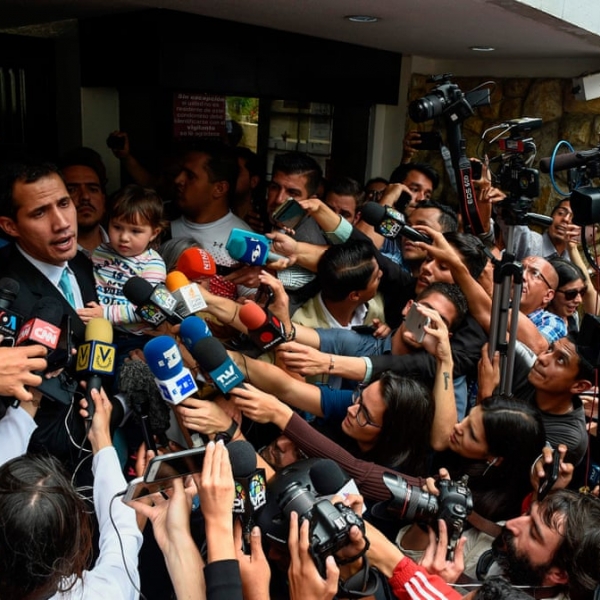 ფედერიკო პარა - კარაკასი, ვენესუელა: თვითგამოცხადებული პრეზიდენტი ხუან გუაიდო ოჯახის წევრებთან ერთად მედიის წარმომადგენლების გარემოცვაში.