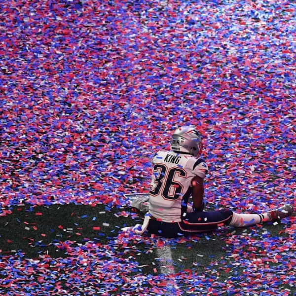 ანჯელა ვაისი - ატლანტა, ჯორჯია: სუპერ ბოულის გამარჯვებული „ნიუ ინგლენდ პატრიოტსის“ წევრი ბრენდონ კინგი გაამრჯვებისადმი მიძღვნილი ზეიმის შემდეგ.
