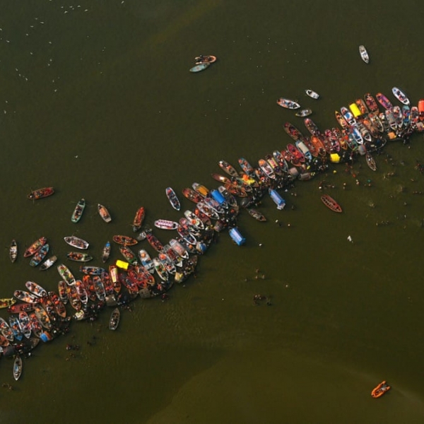 სანჯაი კანოჯია - ალაჰაბადი, ინდოეთი: გემები მდინარეების, განგისა და ამუნის შესართავთან.