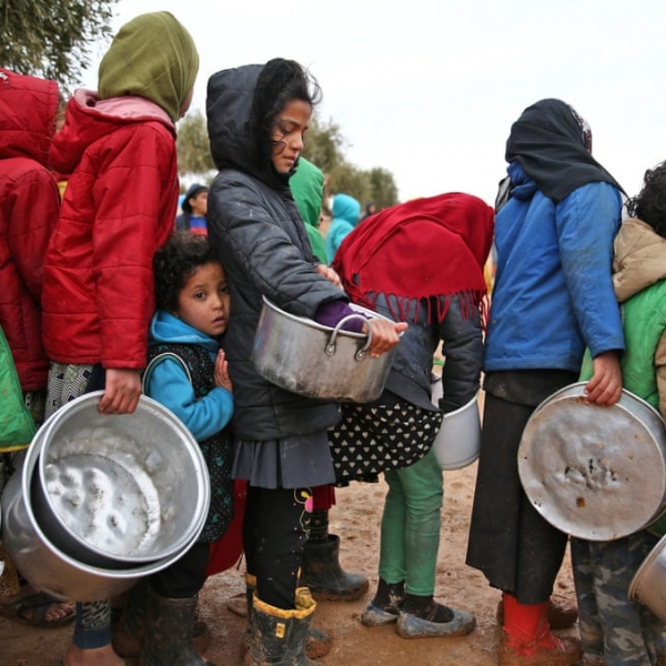 ნაზირ ალ-ხათიბი - იაზი ბაღი, სირია: ბავშვები ჰუმანიტარული ბანაკის საჭმლის რიგში.