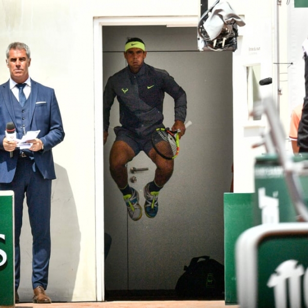 ფილიპ ლოპესი - პარიზი, საფრანგეთი: ჩოგბურთელი რაფაელ ნადალი ფინალისწინა გახურებისას.