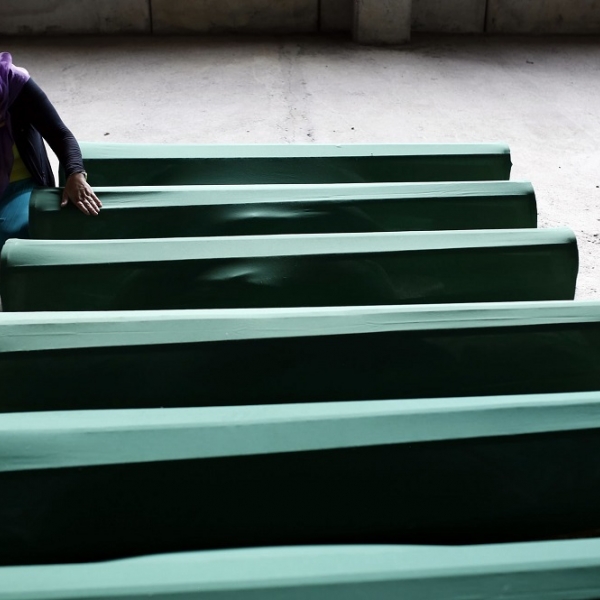 ამელ ემრიჩი - სრებრენიცა, ბოსნია & ჰერცეგოვინა: ქალი ნათესავების კუბოებთან პოტოჩარის მემორიალურ ცენტრში, სადაც 1995 წელს მომხდარი სრებრენიცის გენოციდის მსხვერპლთა ხელახალი ამოცნობა მოხდა.