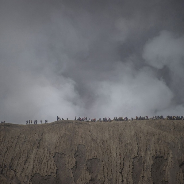 ჯუნი კრისვანტო - პრობოლინგო, ინდონეზია: ტენგერის ტომის წევრები და ტურისტები მთა ბრომოზე გადაადგილდებიან ინდუისტურ იადნია კასადას ფესტივალისას.
