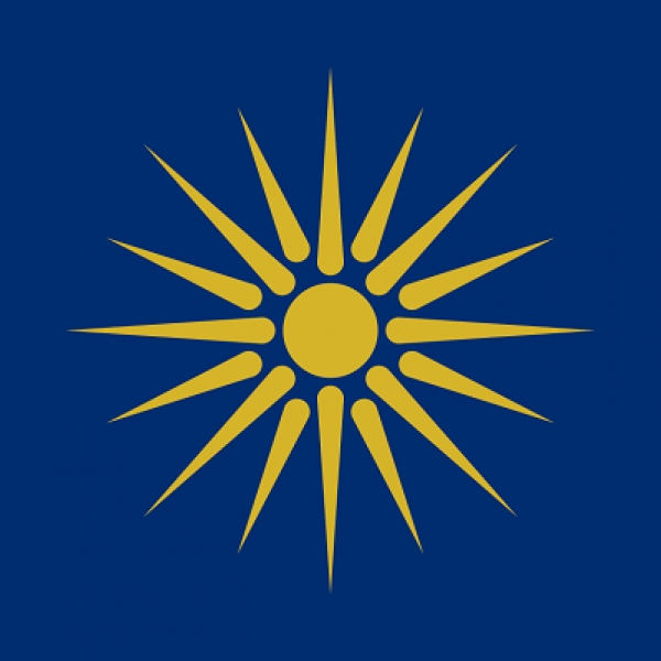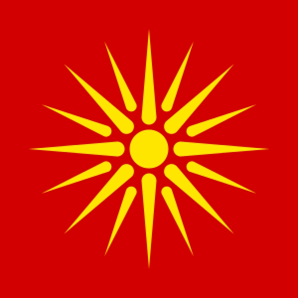 საბერძნეთის პროვინცია მაკედონიის დროშა, რომელზეც გამოსახულია უძველესი სიმბოლო - ვერგინას მზე