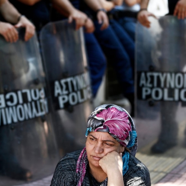 იანის კოლესიდისი - ათენი, საბერძნეთი: გერმანიის მიერ ლტოლვილთა შეშვებაზე დაწესებული შეზღუდვით უკმაყოფილო სირიელი ლტოლვილები საპროტესტო აქციაზე გერმანიის საელჩოს წინ.