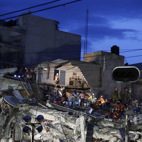 რებეკა ბლექუელი - მეხიკო, მექსიკა: მაშველები იმ საოფისე შენობის ნანგრევებში მუშაობენ, სადაც ცოცხლად გადარჩენილი ადამიანები ჯერ კიდევ იმყოფებიან.