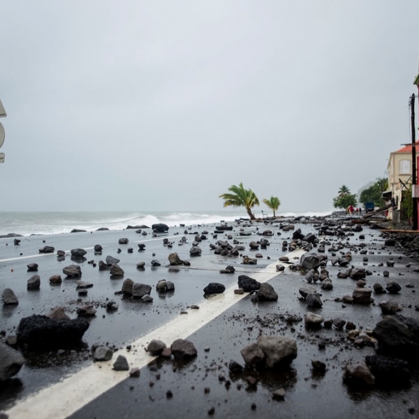 ლიონელ შამუაზო - ლე კარბე, მარტინიკა: ქარიშხალ „მარიას“ მიერ ქუჩაში მიმოფანტული ლოდები.