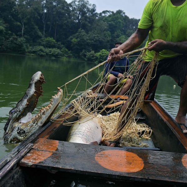 კარლ დე სოუზა - დასავლეთ ამაზონი, ბრაზილია: მეთევზემ ბადით შემთხვევით ნიანგი დაიჭირა.