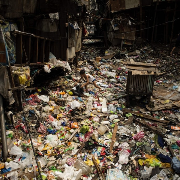 ნოელ სელისი - მანილა, ფილიპინები: ნაგვით სავსე ქუჩაში ბიჭუნა საკუთარი ბურთის აღებას ცდილობს.