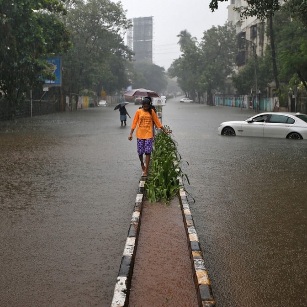 შაილეშ ანდრადე - მუმბაი, ინდოეთი: ძლიერი წვიმების გამო დატბორილ ქუჩაში გოგონა ფრთხილად გადაადგილდება.
