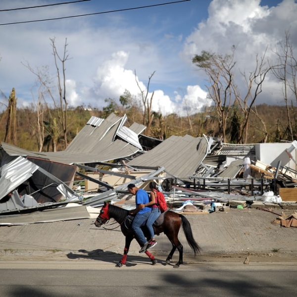 კარლოს ბარია - ხაიუია, პუერტო რიკო: ქარიშხალ „მარიას“ მიერ განადგურებულ ქალაქში მაცხოვრებლები ცხენით გადაადგილდებიან.