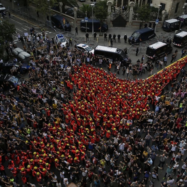 მანუ ფერნანდესი - ბარსელონა, ესპანეთი: კატალონიის დედაქალაქის ქუჩებში ანტი-მადრიდულ დემონსტრაციას მეხანძრეებიც უერთდებიან.