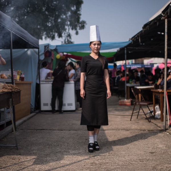 ედ ჯოუნსი - ფხენიანი, ჩრდილოეთ კორეა: მზარეული გიუნ-ჰუი რიუ პორტრეტისთვის პოზირებს.