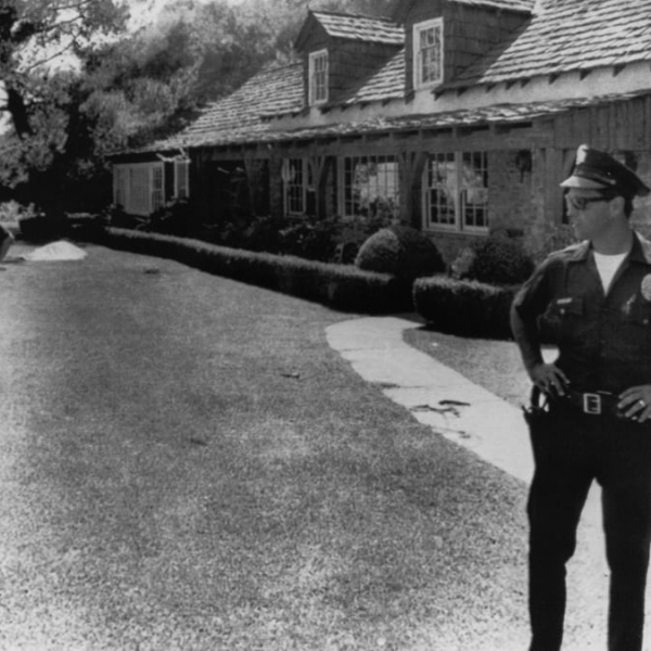 პოლიციელები რეჟისორ რომან პოლანსკის სახლთან, სადაც მისი 9 თვის ორსული მეუღლე, მსახიობი შერონ ტეიტი სექტა „ოჯახის“ წევრებმა მხეცურად მოკლეს.