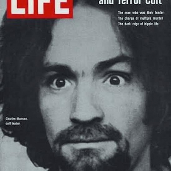 მენსონი სასამართლო პროცესზე, სადაც მუსიკოს გარი ჰინმანის მკვლელობის ორგანიზებისთვის სამუდამო პატიმრობა მიესაჯა, 1970 წ.