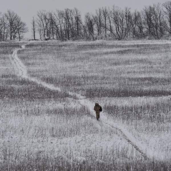 Reuters - ტრავნევე, უკრაინა: ჯარისკაცი მთავრობის მიერ კონტროლირებულ სოფელში გადაადგილდება.
