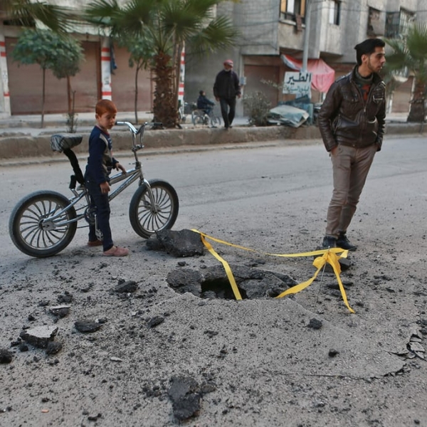 აბდულმონამ ეასა - ჰამურია, სირია: ჭურვისგან წარმოქმნილი ხვრელი ქუჩაში.