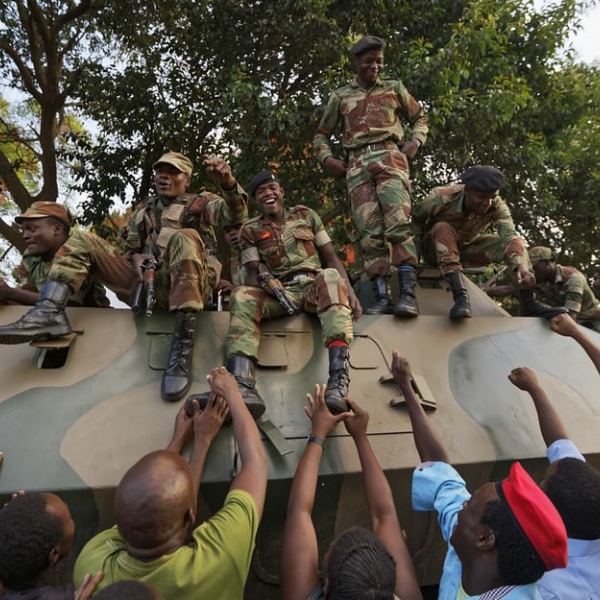 ბენ კერტისი - ჰარარე, ზიმბაბვე: პრეზიდენტ რობერტ მუგაბეს გადადგომით გახარებული მოსახლეობა ზიმბაბველ სამხედროებს ეგებება.