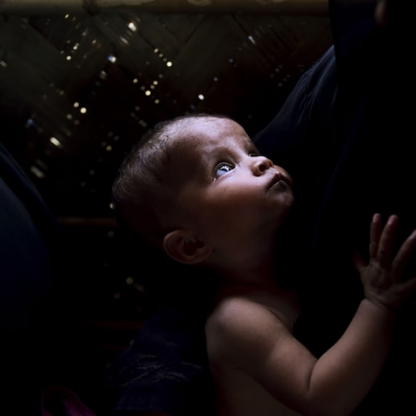 მუნირ უზ ზამანი - ბალუხალი, ბანგლადეში: მცირეწლოვანი როჰინჯა ლტოლვილი ბანაკში არსებულ მალნუტრიციის მწვავე შემთხვევების მართვის ცენტრში.