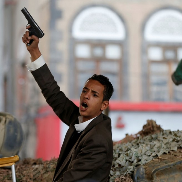 ხალედ აბდულა - სანა, იემენი: ჰუთისტი მეამბოხე იარაღით ხელში ზეიმობს ყოფილი პრეზიდენტის, ალი აბდულა სალეჰის მოკვლას.