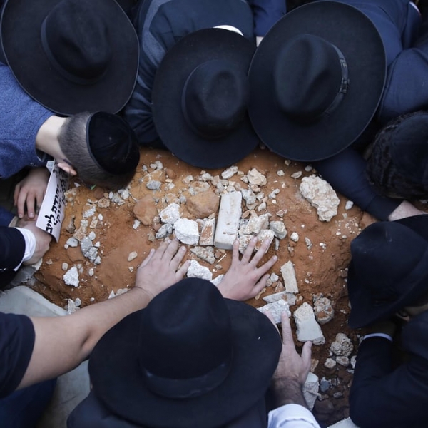 მენაჰემ კაჰანა - ბნეი ბრაკი, ისრაელი: ადამიანები პატივისცემას გამოხატავენ რაბინის, აჰარონ იეჰუდა ლაიბ შტაინმანის დაკრძალვაზე.