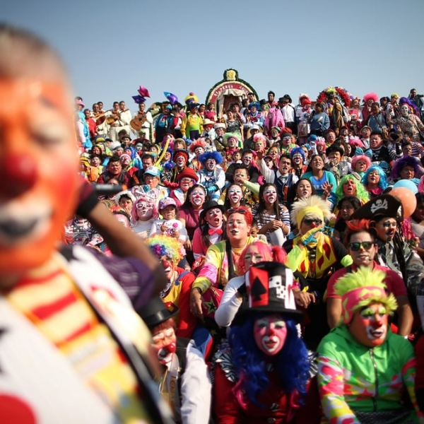 ედგარდ გარიდო - მეხიკო, მექსიკა: კლოუნების გარეგნობით გამოწყობილი ადამიანები მფარველი წმინდანის, გვადალუპეს ღვთისმშობლის დღეზე.