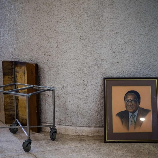 ჯეკესაი ნჯიკიზანა - ჰარარე, ზიმბაბვე: ქვეყნის ექს-პრეზიდენტ რობერტ მუგაბეს ჩამოხსნილი პორტრეტი პარტია „ზანუს“ ოფისში.